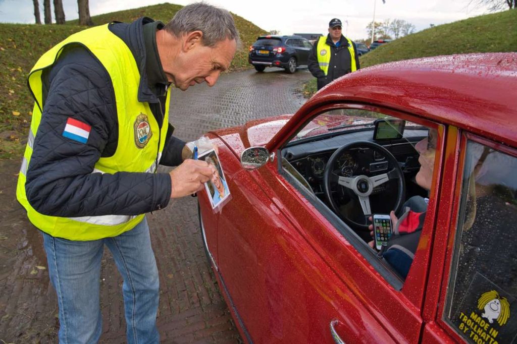 Tegen de voorspellingen van buienradar in druppelden rond negen uur ‘s morgens niet alleen de deelnemers het prachtige Fort Wierickerschans binnen, maar vielen er af en toe ook druppels uit de lucht. Niettemin stonden er bij de start heel wat cabrio’s met open dak in de rij om weggevlagd te worden door KNAC-directeur Peter Staal.