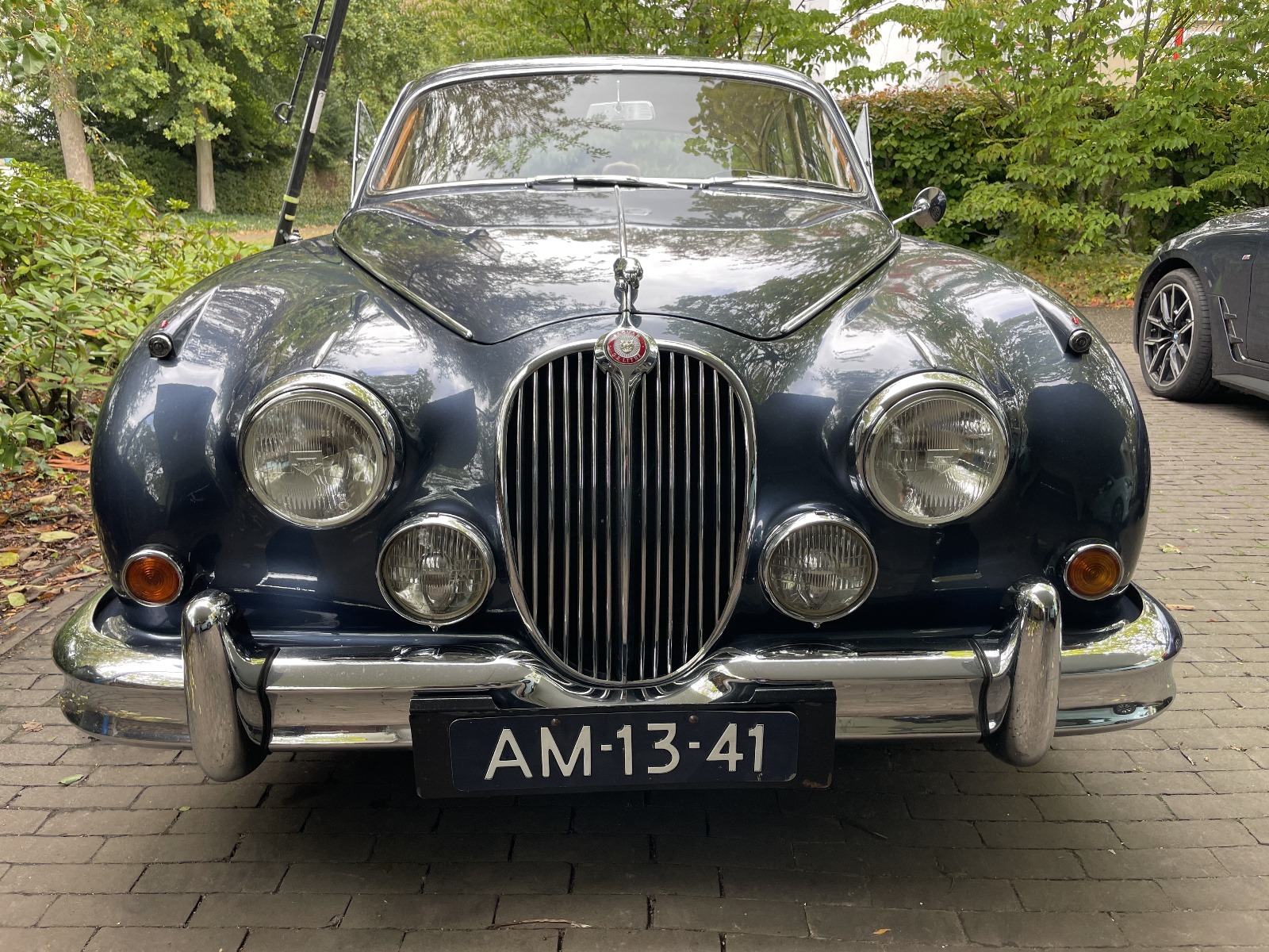 Matching Numbers 3.8 liter Jaguar MK2 automaat. Import uit Californië in 1998. Daarna compleet gerestaureerd: nieuw metallic gespoten, nieuw chroom,…