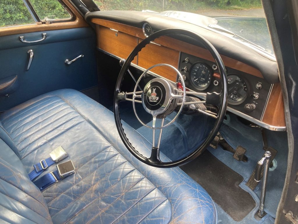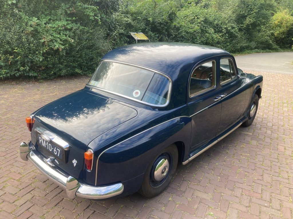 Aangeboden charmante en grotendeels originele Rover 95 (P4-serie) uit 1964 in donkerblauw met origineel blauw leder en walnoothouten interieur. Alle eigenaren zijn bekend (1e eigenaar architect uit Somerset), inclusief documentatie en originele verkoopmap. Recent las- en revisiewerk gedaan, nieuwe blauwe vloermatten en gordels voor. Voorspatborden moeten vervangen worden, goede exemplaren + meer onderdelen bijgeleverd.